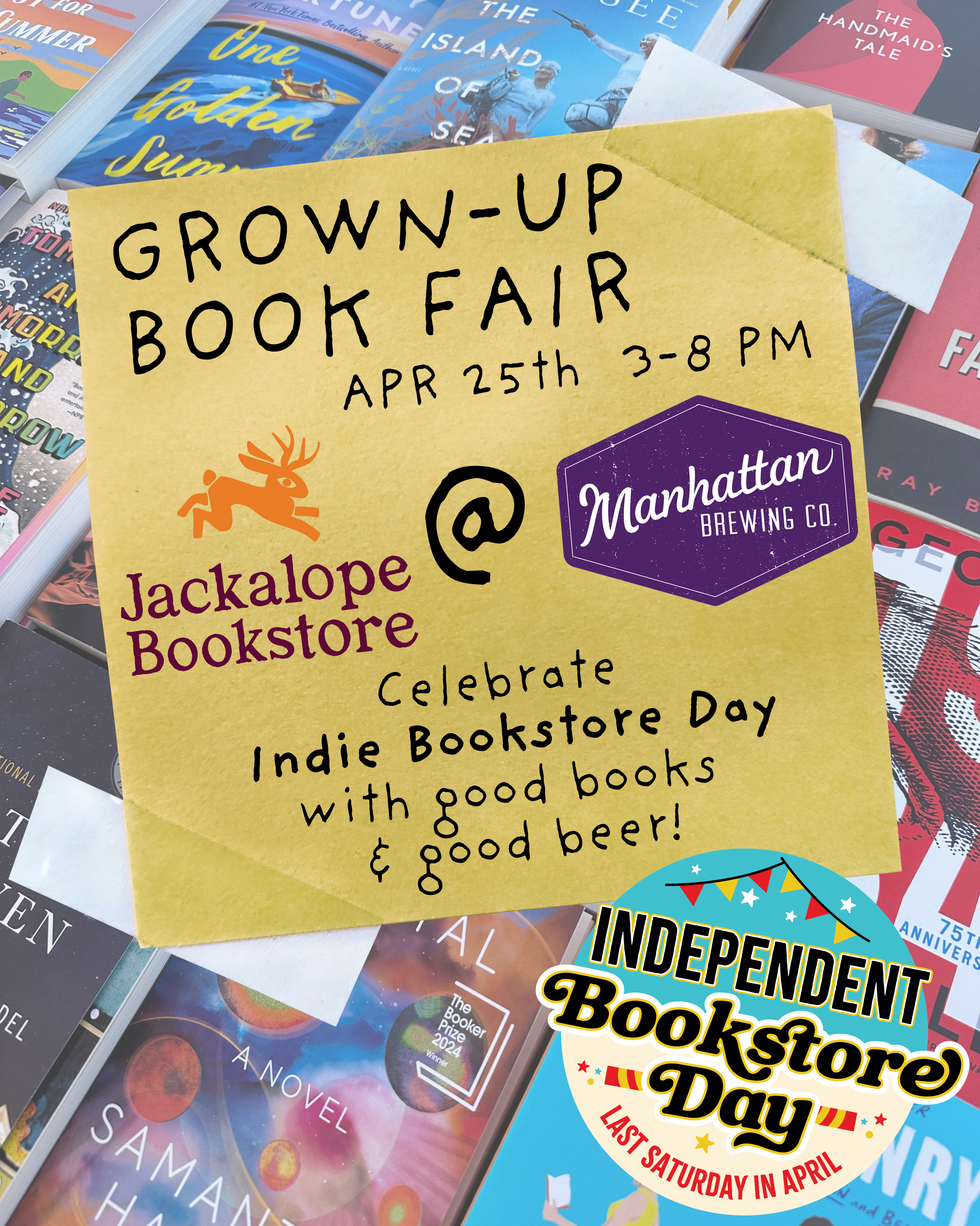 Our next events. Saturday Apr. 25th3-8pmGrown-Up Book Fair for Independent Bookstore Day @Manhattan Brewing Company 406 POYNTZ AVE Manhattan, KS 66502View Post Saturday May 2nd9am-6pmPop-Up Book Fair @Old School Flea Market’s Spring Fling 22264 SW 1000 RD Welda, KS 66091View Post